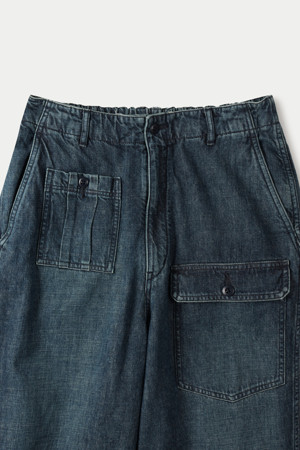 SAGE DE CRET 데님 싱글 플리츠 와이드 팬츠