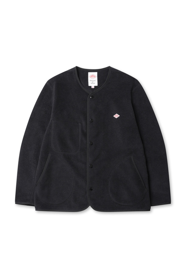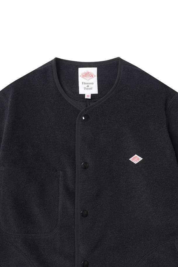 WOMEN'S FLEECE COLLARLESS JACKET - BLACK