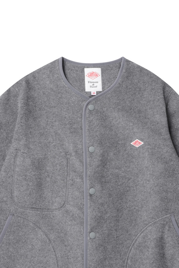 WOMEN'S FLEECE COLLARLESS JACKET - DK.GREY