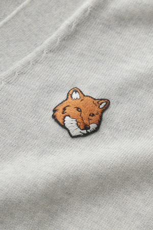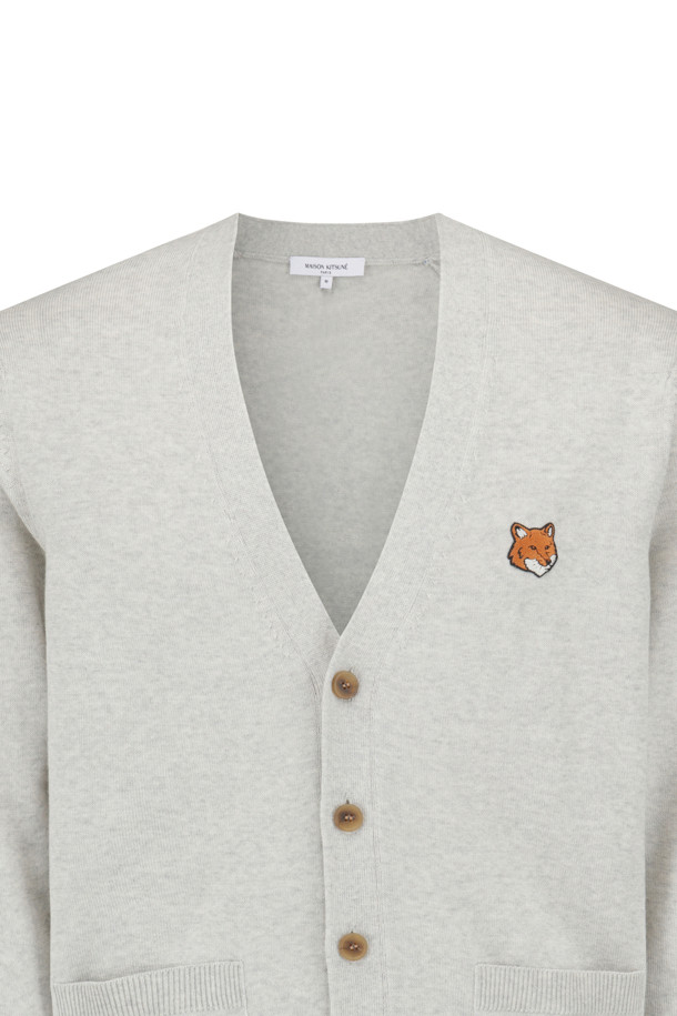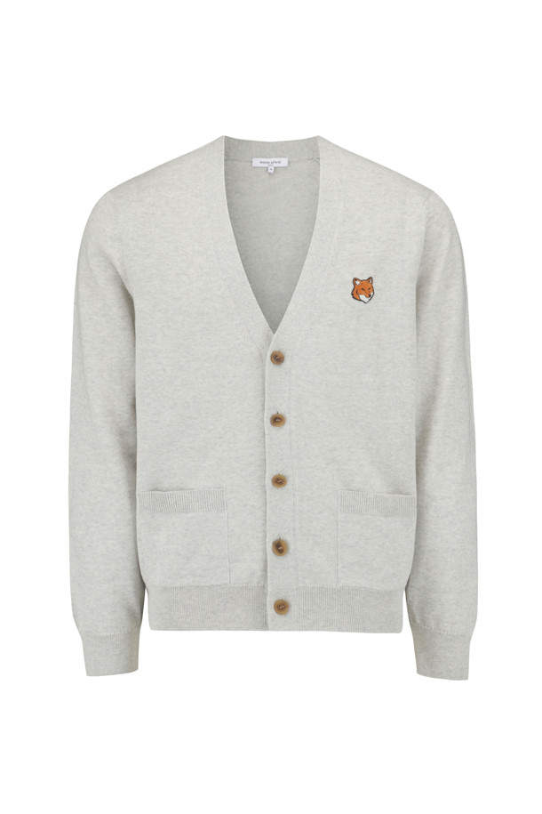 FOX HEAD MERINO REGULAR CARDIGAN - LIGHT GREY MELANGE