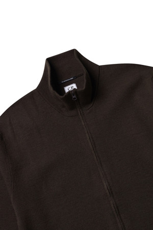 (C.P. COMPANY) THE METROPOLIS SERIES EXTRAFINE MERINO WOOL ZIPPED CARDIGAN - 17CLKN013A005528A RUM RAISIN