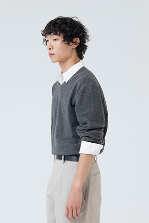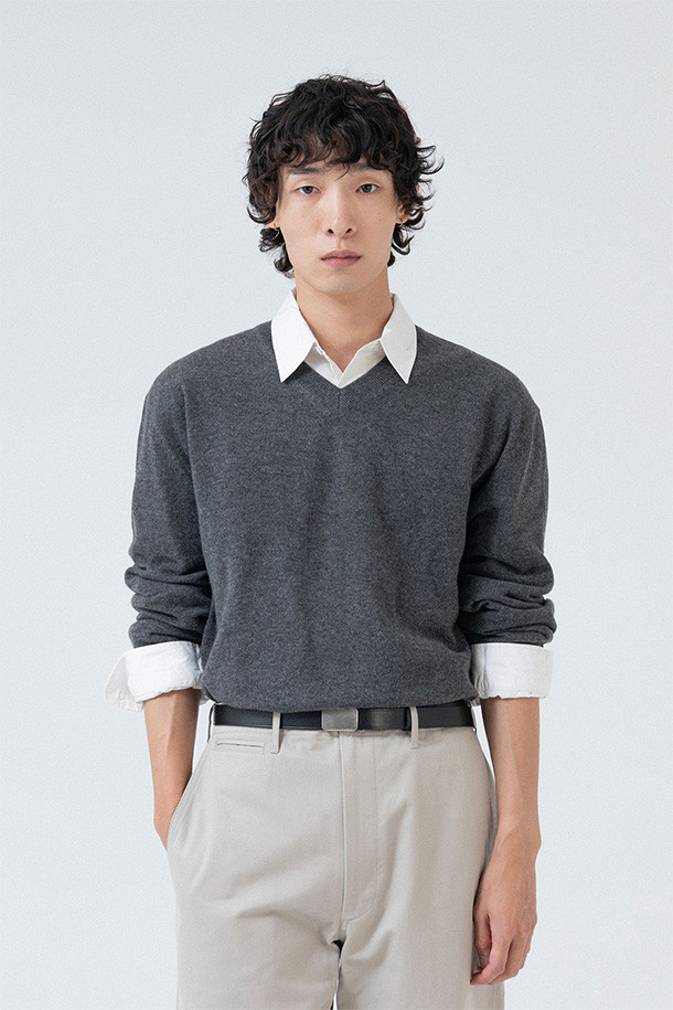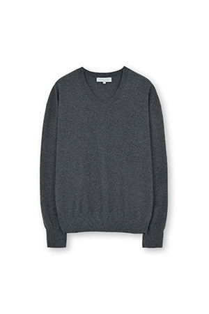 EXTRA SUPER FINE V NECK KNIT - CHARCOAL