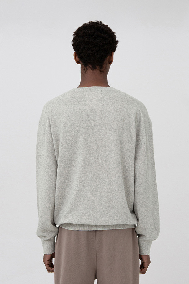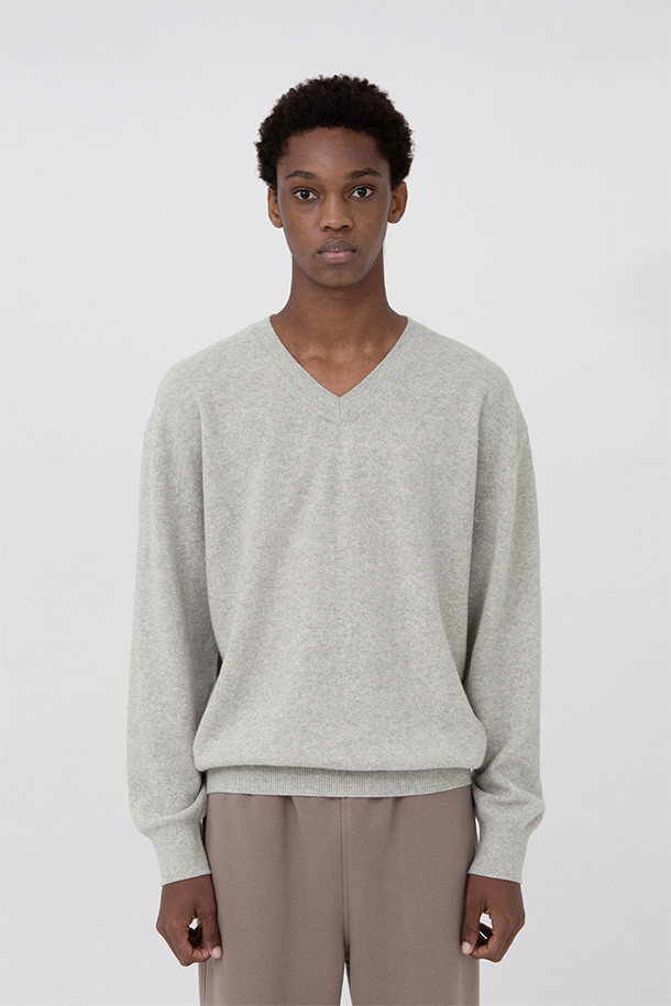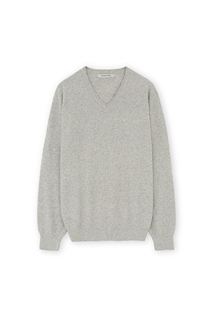 EXTRA SUPER FINE V NECK KNIT - LIGHT GREY