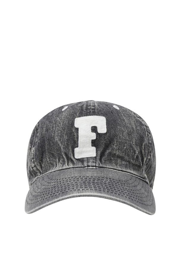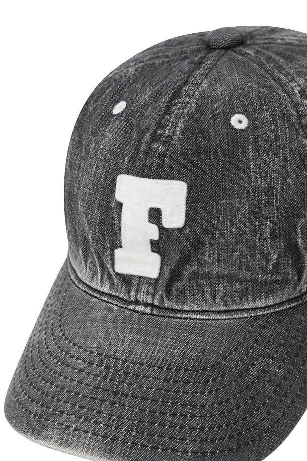 6843HW 6PANEL DENIM BASEBALL CAP 'F' PATCH VINTAGE WASH - BLACK