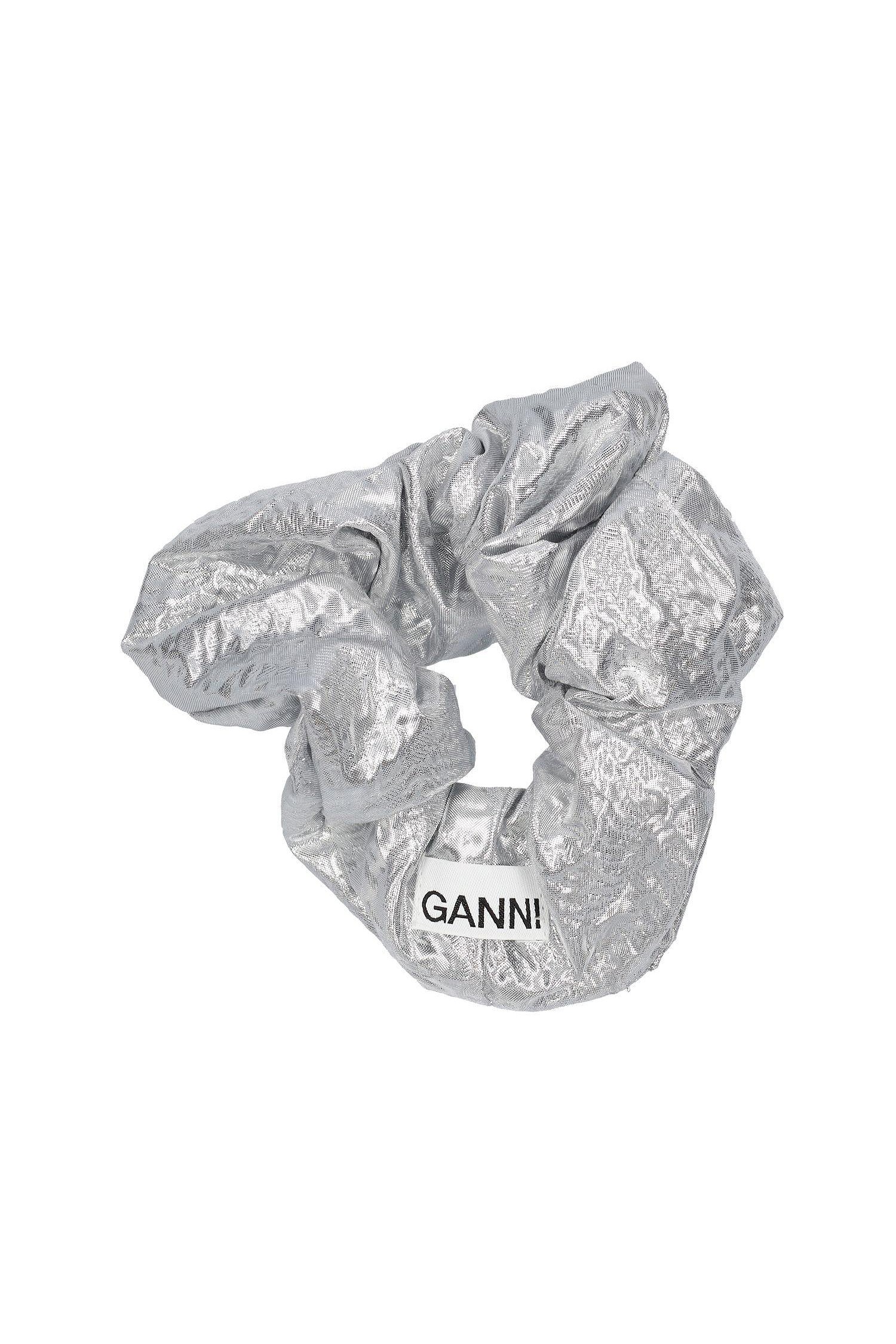 [GANNI] METALLIC JACQUARD SCRUNCHIE A4810 018 - SILVER