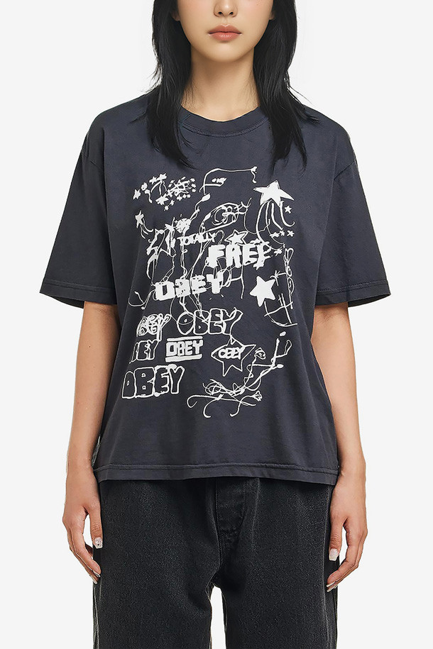 [오베이] OBEY FIREWORK TYPE 파이어워크 타입 반팔 티셔츠 - BLACK