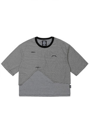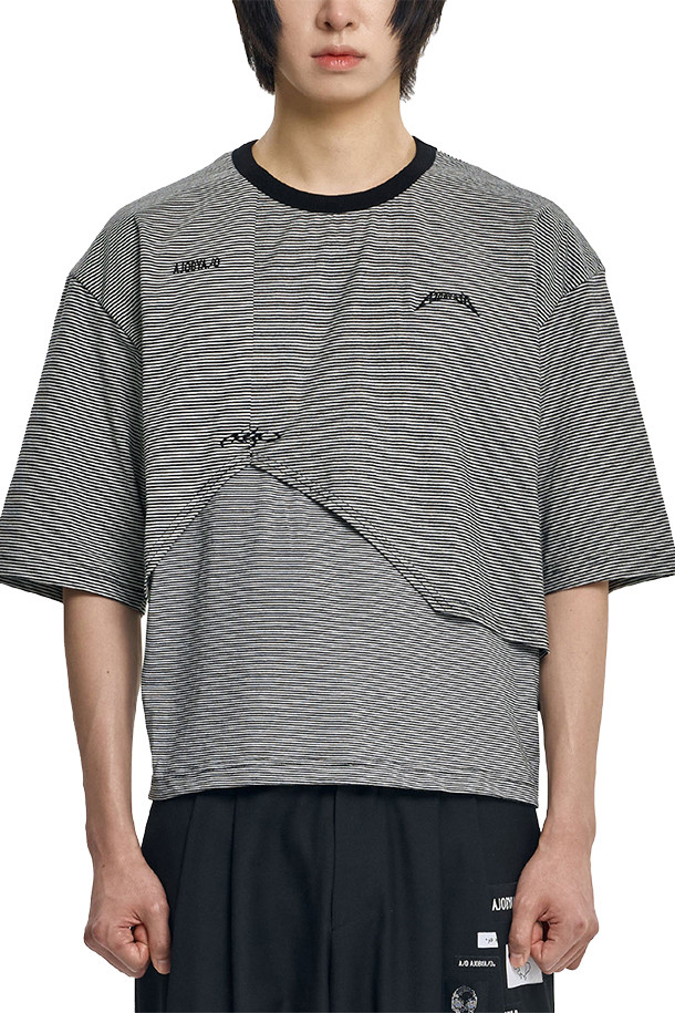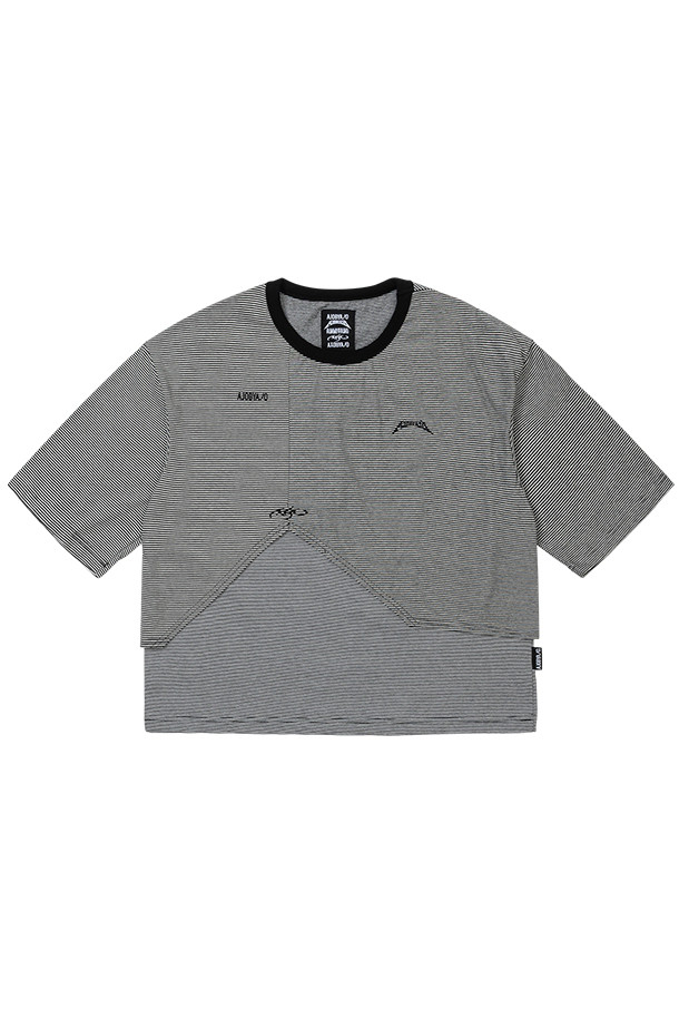 [아조바이아조] Paneled Stripe Cropped T-Shirt 패널드 스트라이프 크롭 티셔츠 - BLACK
