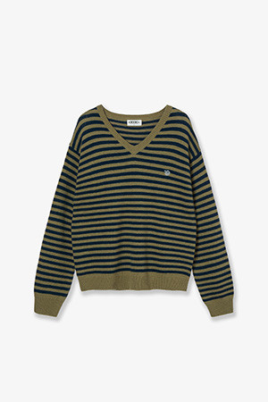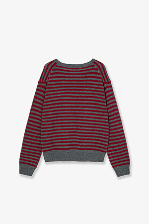 STRIPE V-NECK KNIT PULLOVER - GREY