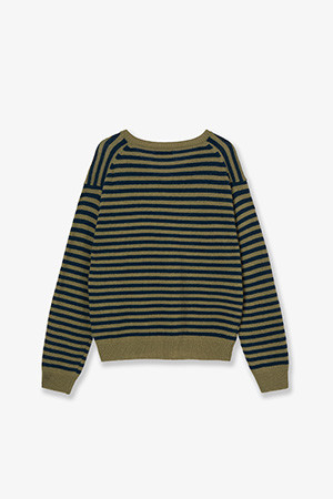STRIPE V-NECK KNIT PULLOVER - KHAKI