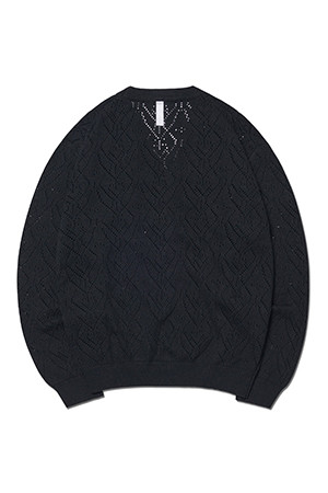 [노매뉴얼] T.B PUNCHING KNIT CARDIGAN 펀칭 니트 가디건 - BLACK