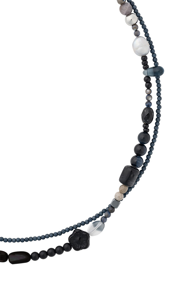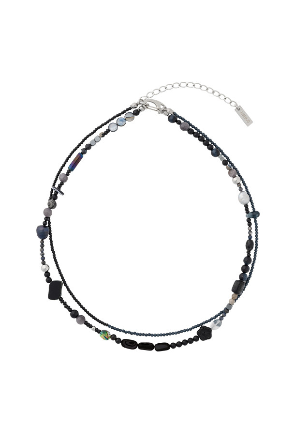 [아조바이아조] Black Light Beads Layered Necklace 블랙 라이트 비즈 레이어드 네클리스 - BLACK