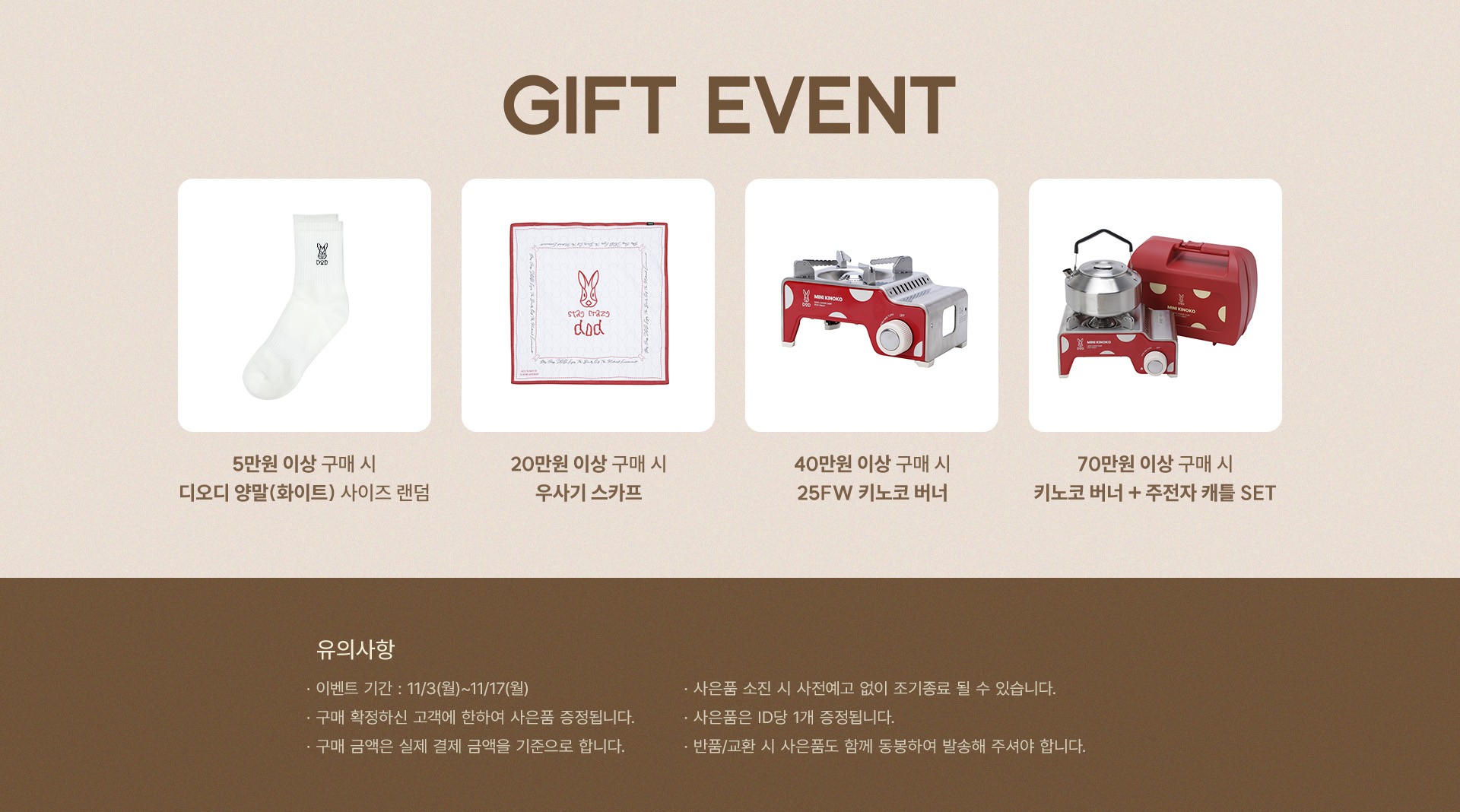 5% OFF + 무료반품금액대별 사은품 증정