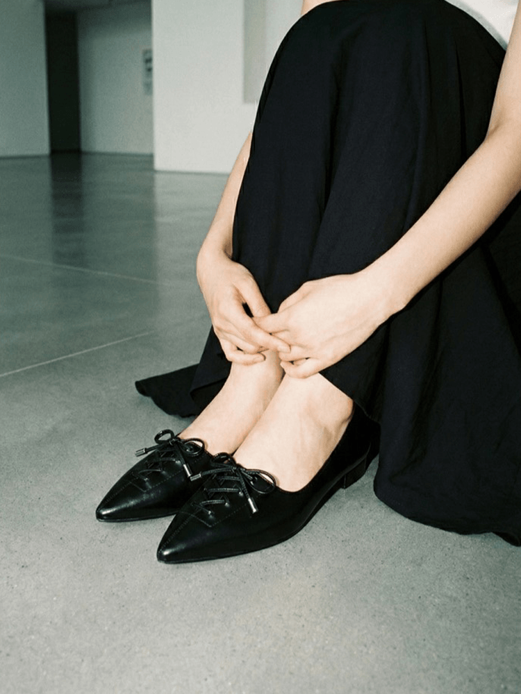 리본 포인트 스틸레토 플랫 슈즈 LC541_1cm