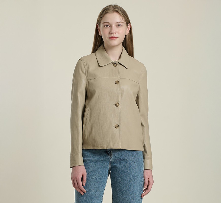 [26SP] 밑단 자수 포우레더 자켓 - LIGHT BEIGE B6A1J10171