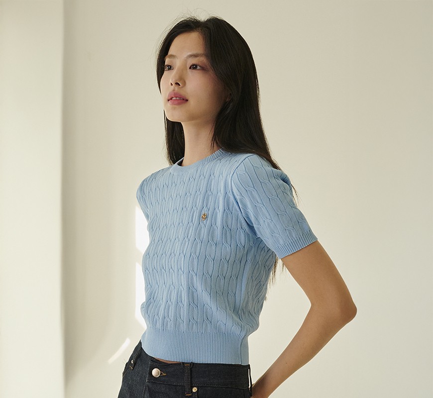 써머 케이블 라운드 니트 - 스카이블루 / Summer Cable Round Knit - Sky Blue