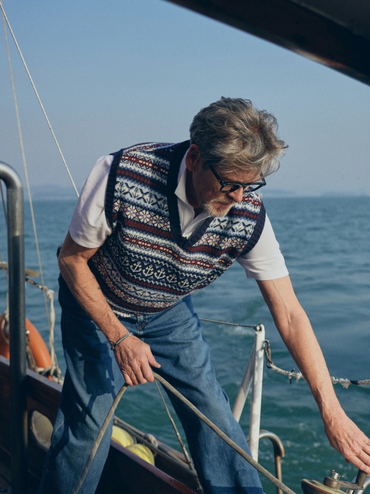 건지울른스는 1976년 영국 건지 섬에서 설립된 이래, 17세기부터 이어져 온 전통적인 스웨터 제작 방식을 계승해오고 있습니다. 건지 섬의 어부들이 거친 바다에서 생존하기 위해 입었던 스웨터는 단순한 방한복을 넘어, 가족을 위한 헌신과 강인함의 상징이었습니다. 건지울른스는 그들의 정신을 담아 과거와 현재를 연결하는 디자인을 전통적인 방식으로 전개하고 있습니다.