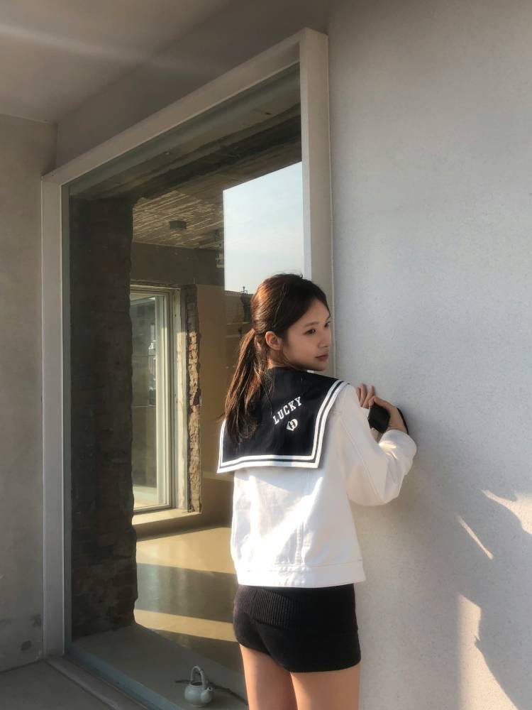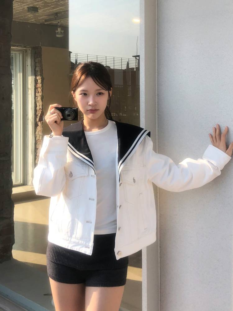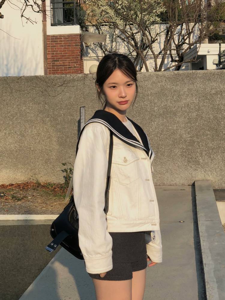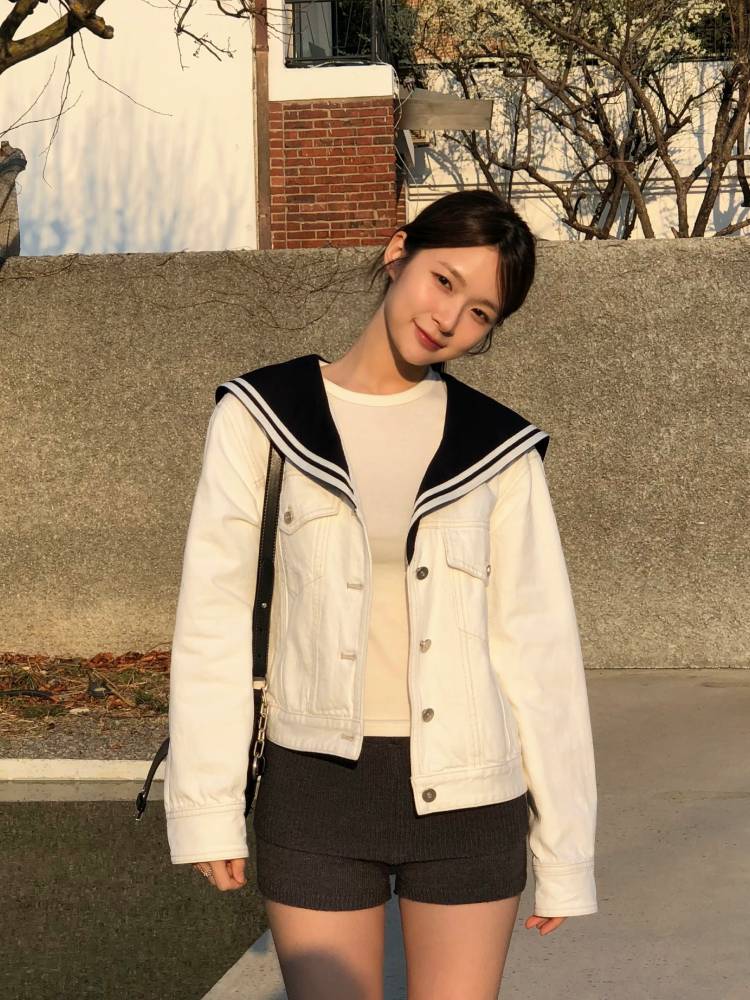자수와 테이프 디테일이 있는 세일러 카라 자켓